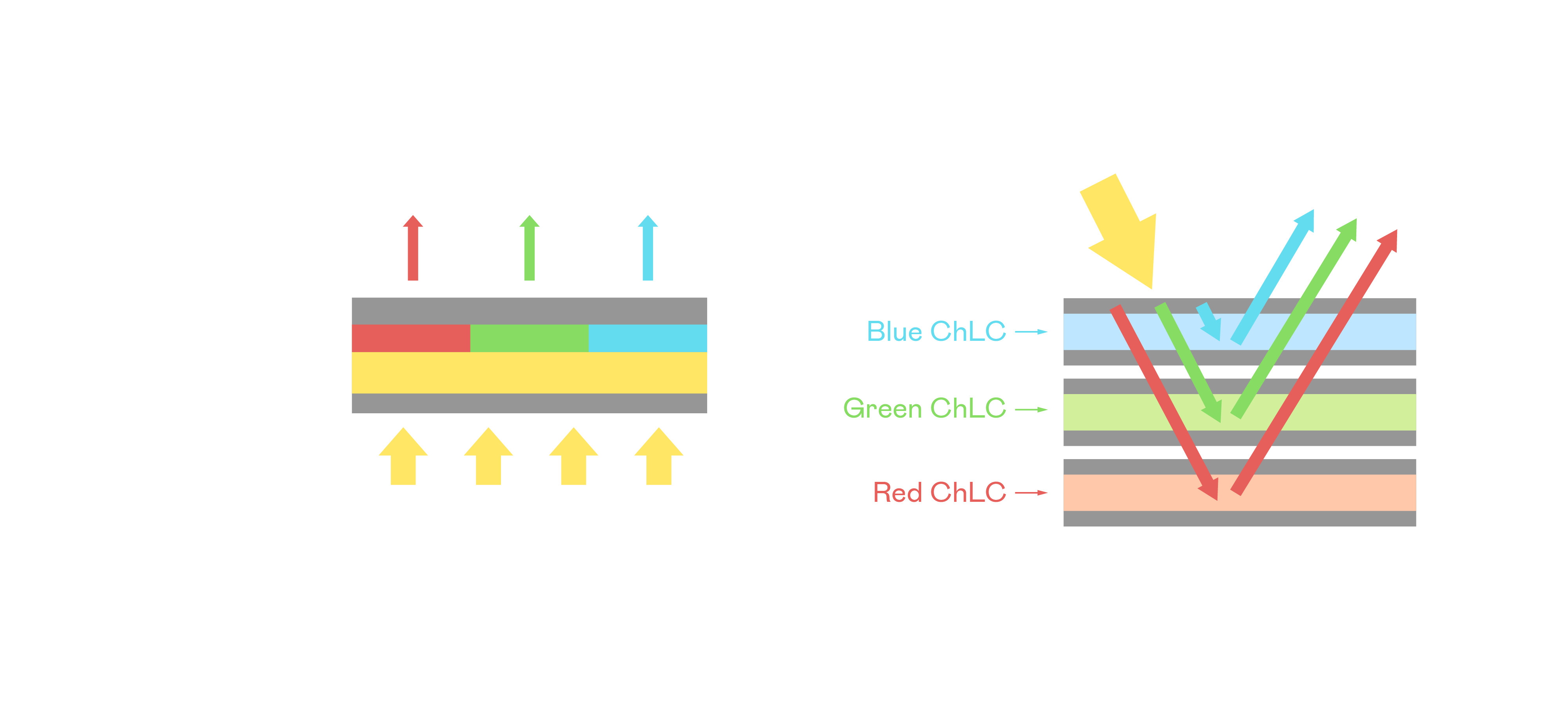 金年会jinnianhui官方在线登录胆固醇液晶显示器是由红、绿、蓝三层胆固醇液晶面板堆叠而成,并采用无彩色滤光片设计,减少环境光在反射过程中的损耗。